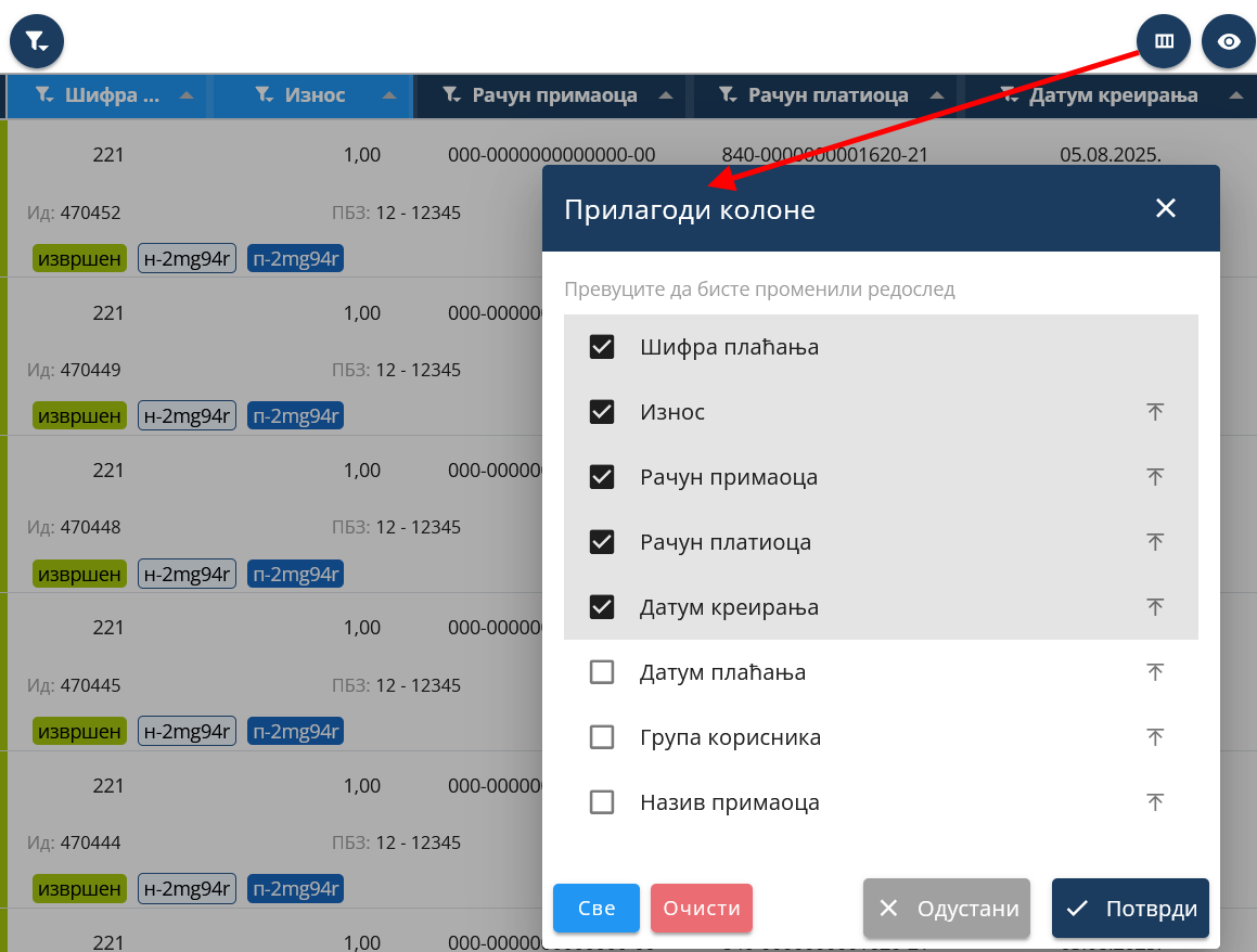 Pokretanje plaćanja za jedan ili više (do 5000) naloga za prenos.